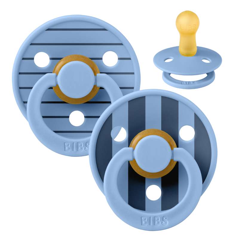 Bibs Rund Colour Napp - 2-Pack - strl. 2 - naturgummi - Himmelblå/Babyblå