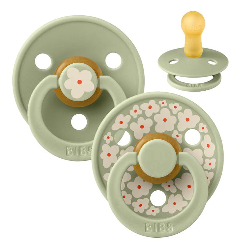 Bibs Rund Colour Napp - 2-Pack - strl. 2 - naturgummi - Studio - Jasmine - Salvia/Salvia