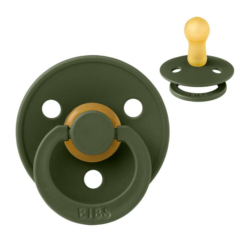 Bibs Rund Colour Napp - strl. 2 - naturgummi - Oliv