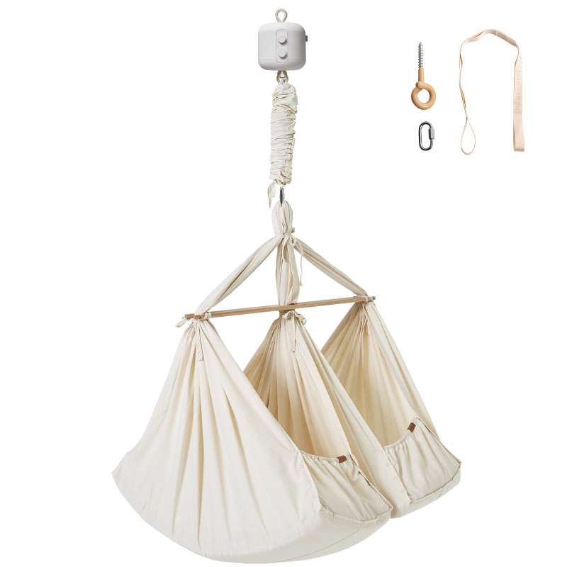 Membantu Bundle - Premium - Twin Slyngevugge m. Vuggemotor og Loftophæng - Natur