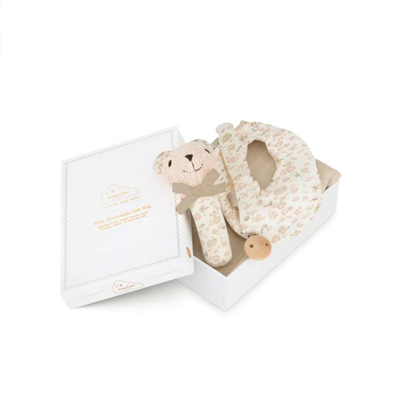 Smukt printet Gaveæske til Nyfødt, der indeholder et udvalg af de mest populære baby musthaves;...