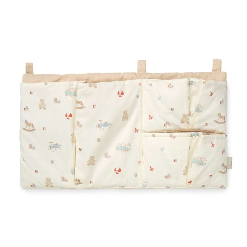 Praktisk och fin Sängficka att hänga på spjälsängen, så nappar, böcker, snuttefiltar och andra sängtidsnödvändigheter...