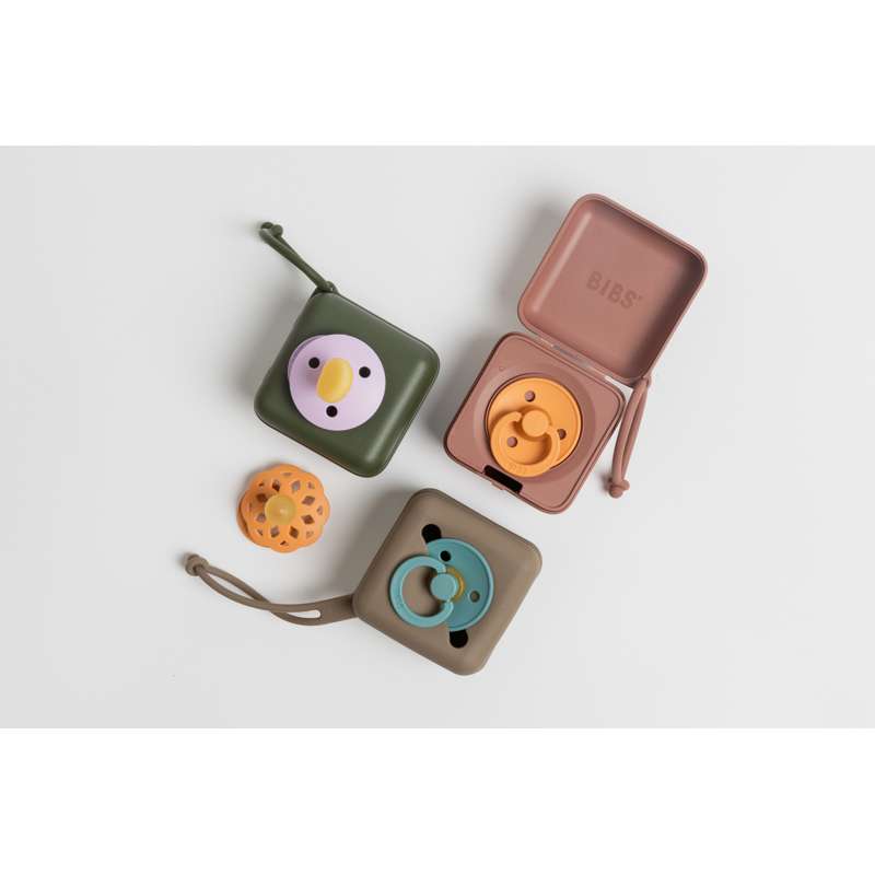 BIBS Accessories Pacifier Case - Silikone - Sutteboks m. Plads til 3 Sutter - Dark Oak