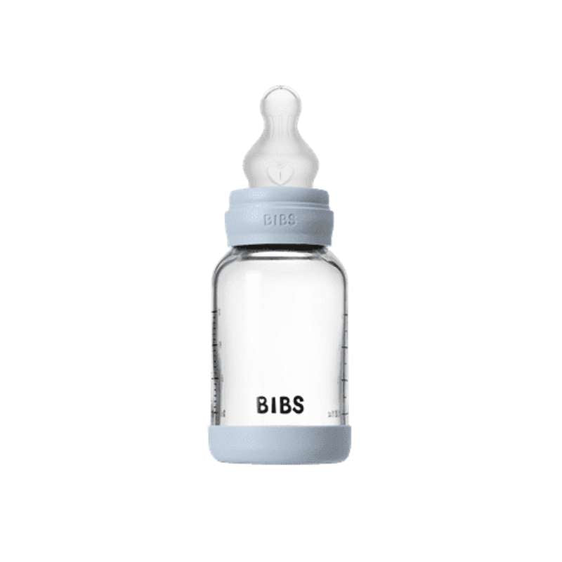 BIBS Bottle - Sutteflaskesæt - Glas - Silikone/Slow Flow/Rund - 120 ml. - Baby Blue