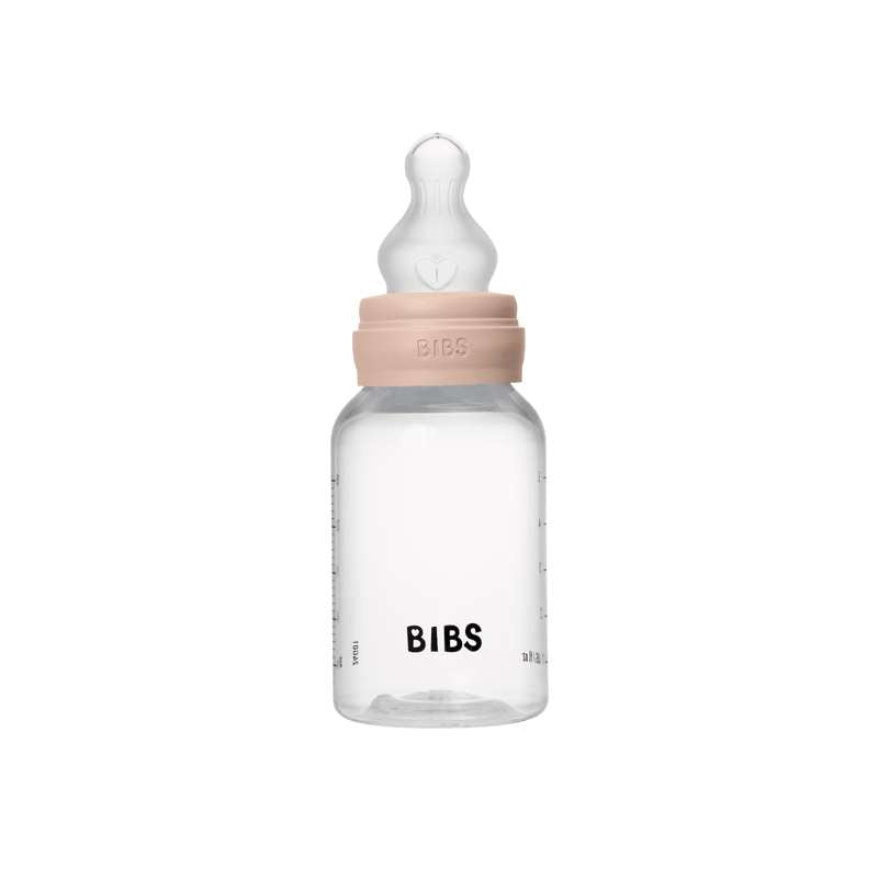 Det komplette BIBS Bottle sæt med sutteflaske i plastik.