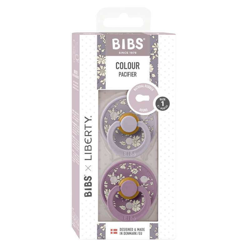Bibs Rund Colour Napp - 2-Pack - strl. 1 - naturgummi - Liberty - Capel/Fossil Grey Mix