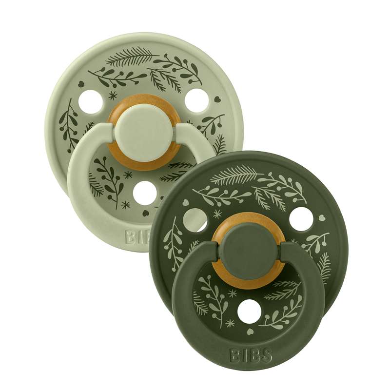 BIBS Rund Colour Sut - 2-Pak - Str. 1 - Naturgummi - Holiday Leaf - Hunter Green