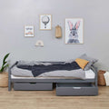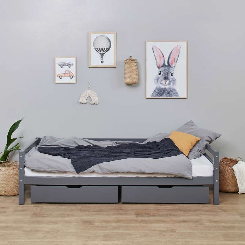 Det går att köpa till lådor till sängen, som utnyttjar golvytan på bästa sätt och skapar en fin förvaringsplats för leksaker, sängkläder eller andra prylar. Lådor säljs separat. Sängen kan omvandlas till en halvhög säng med en modul från Hoppekids.