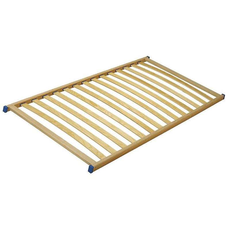 I stedet almindelige lameller har denne seng en fleksibel indlægsbund der består af en træramme med 14 laminerede og formspændte lameller for øget liggekomfort.