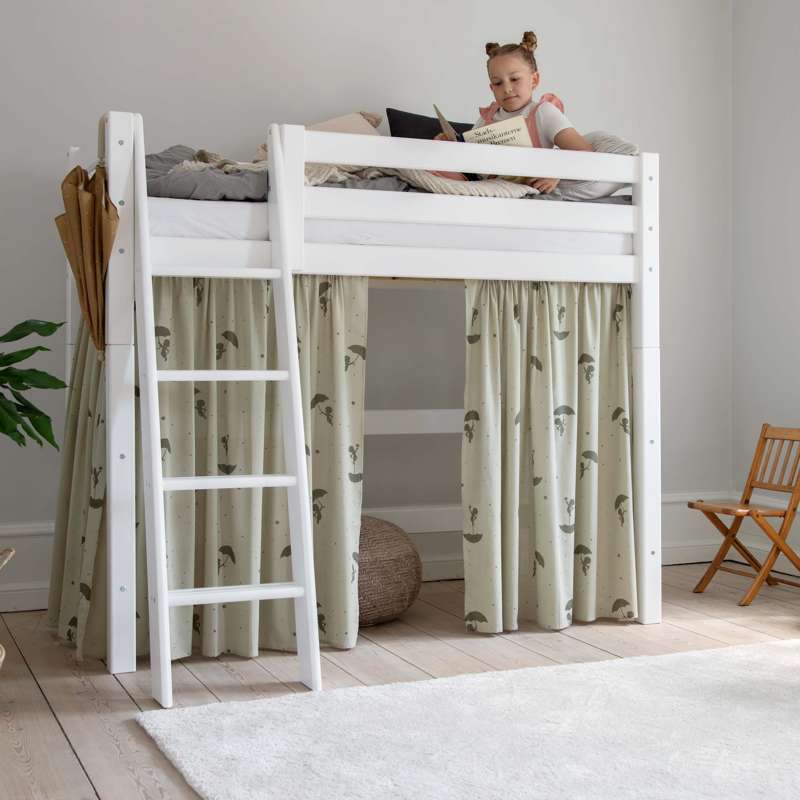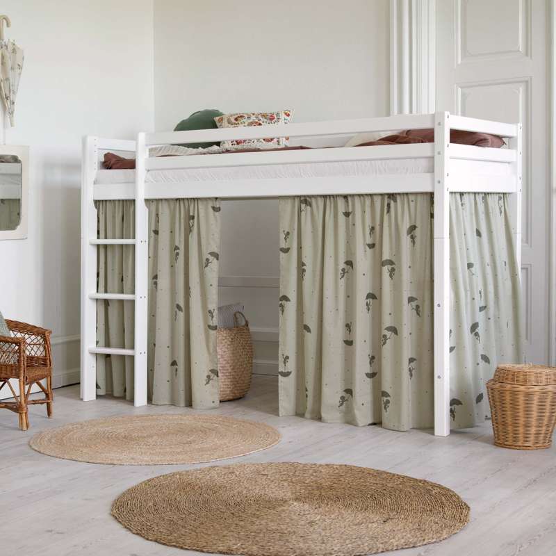 Forhænget skaber også en hyggelig hule under den mellemhøje seng, som er perfekt til leg eller når dit barn har brug for en lille pause fra resten af verden. Dekorér eventuelt hulen med en madras, tæpper, puder, lyskæder og andre hyggelige sager.