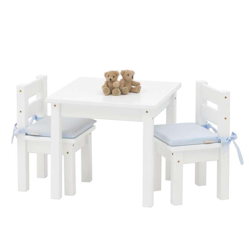 Fin lille pude i lyseblå til MADS-stolen fra Hoppekids. Nem at montere og giver hyggelig stemning på værelset.