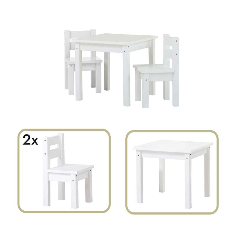 Hoppekids MADS Barnbord med två stolar - Vit