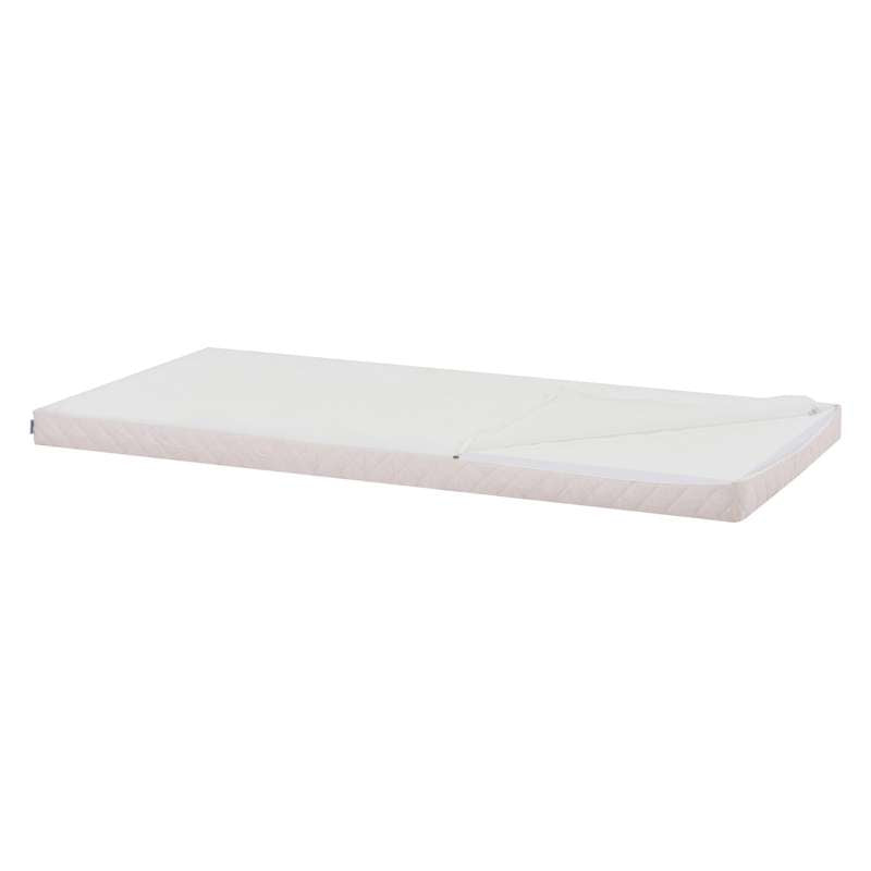 Hoppekids Betræk til madras er lavet i Oeko-tex-certificeret bomuld med filtindlæg . Der er lynlås på 3 sider og det kan maskinvaskes ved 30 grader. Kvaliteten på bomulden er 125 g/m2 og 80 g/m2 på pladevattet.