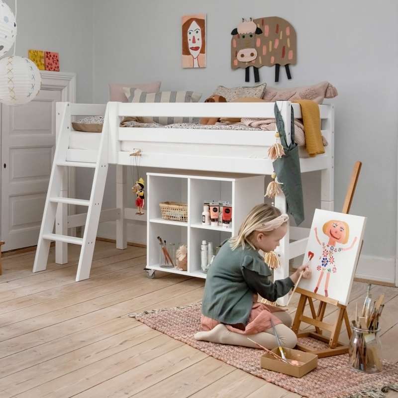 Højden på reolen gør, at den er ideel til at indrette som dukkehus og toppen kan bruges som legeoverflade til, når der bygges med klodser eller andet. Hjulene gør det nemt at flytte reolen rundt i værelset og det giver en rigtig fin fleksibilitet. Det er derfor nemt at flytte rumdeleren når der skal gøres rent, leges eller når værelset trænger til lidt forandring.