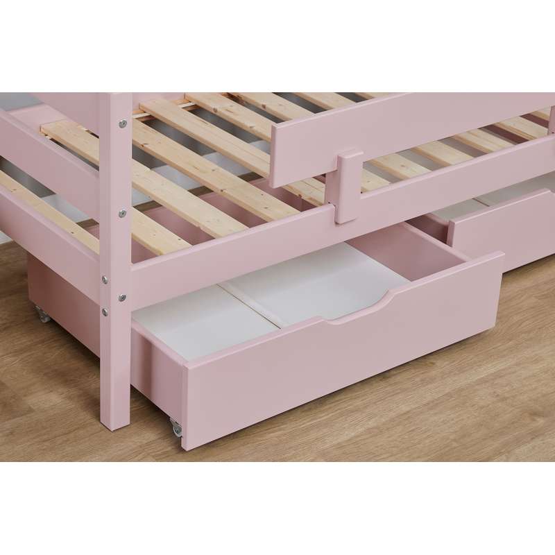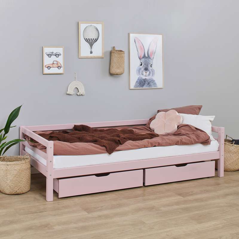 Skuffset med stora och breda lådor från Hoppekids utnyttjar utrymmet under sängen så att det blir plats för förvaring. Lådorna har hjul så att det är lätt att dra dem fram och tillbaka under sängen. Förvara sängkläder, leksaker eller något helt annat under sängen. Lådorna kommer i 2 storlekar så att de passar till sängarna från Hoppekids med madrassmått 90 x 200 cm / 70 x 190 cm eller sängarna med madrassmått 70 x 160 cm. Skuffsetet kommer i en härlig ljusrosa färg, Pale Rose, men finns också i andra fina färger som passar till sängarna från Hoppekids.