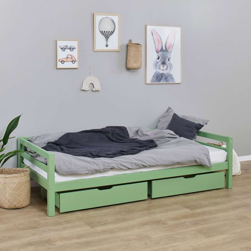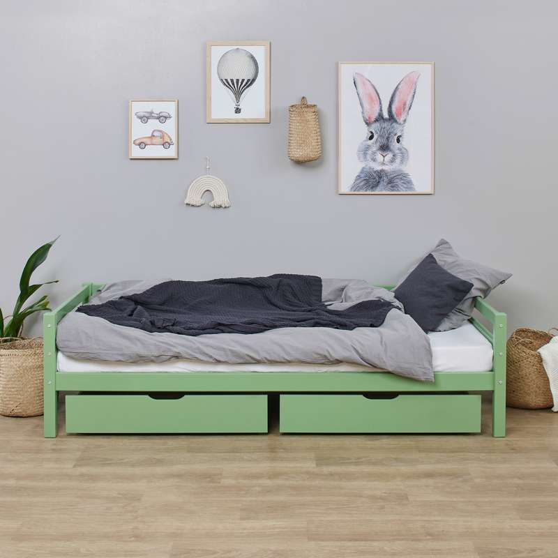 Praktiskt Hoppekids lådset i Pale Green på hjul för soffor och våningssängar. Detta lådset kan användas för förvaring av kläder, leksaker, filtar eller något helt annat.