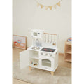 Gør madlavning til leg og fantasi med det elegante Kid’oh Chef’s Legekøkken med lyd og lys – et stilrent trækøkken i klassisk hvid, der inviterer dit barn til timevis af kreativ rolleleg og hverdagseventyr.