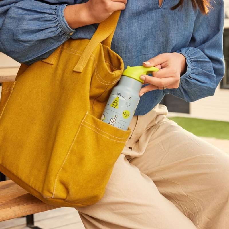 Desuden en løkke, så drikkeflasken via låget kan fastgøres til en taske, rygsæk eller klapvogn.