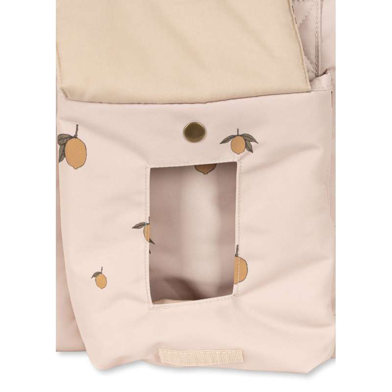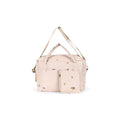 "All you need"-tasken lukkes med lynlås og har D-formede ringe på hver side, der kan sættes fast på barnevognens håndtag eller stativ med barnevognskroge.