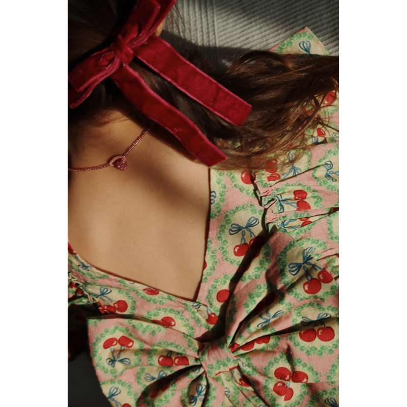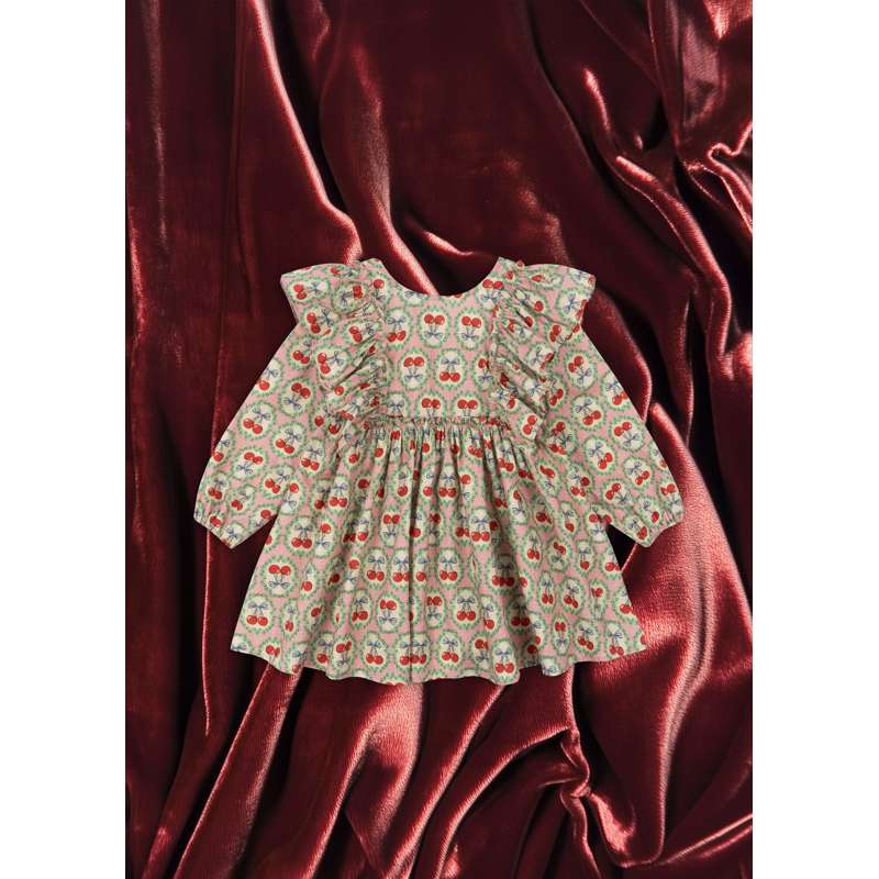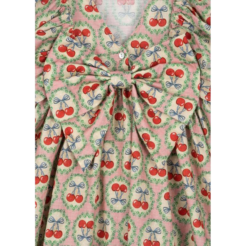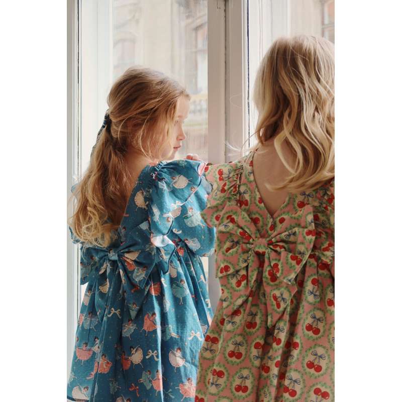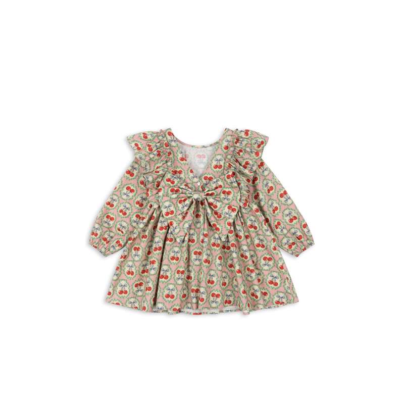 Konges Sløjd Evia Långärmad Bow Klänning - GOTS - Cherry Bow