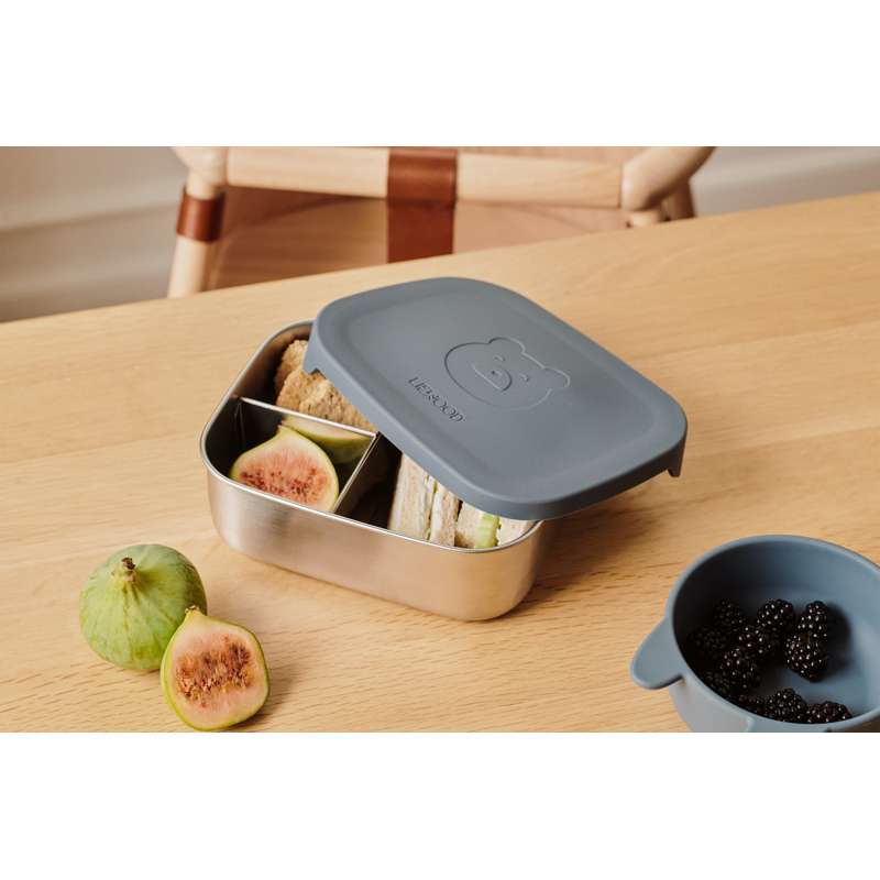 Liewood Arthur Ruminddelt Madkasse - Stål/Silikone - Mr. Bear/Whale Blue