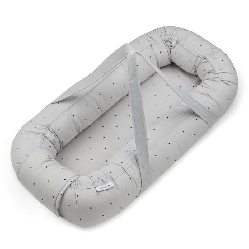 Som en av de få har babynestet från Liewood en hård bärplatta i botten och kraftiga remmar - på det sättet kan du flytta baby när den sover.