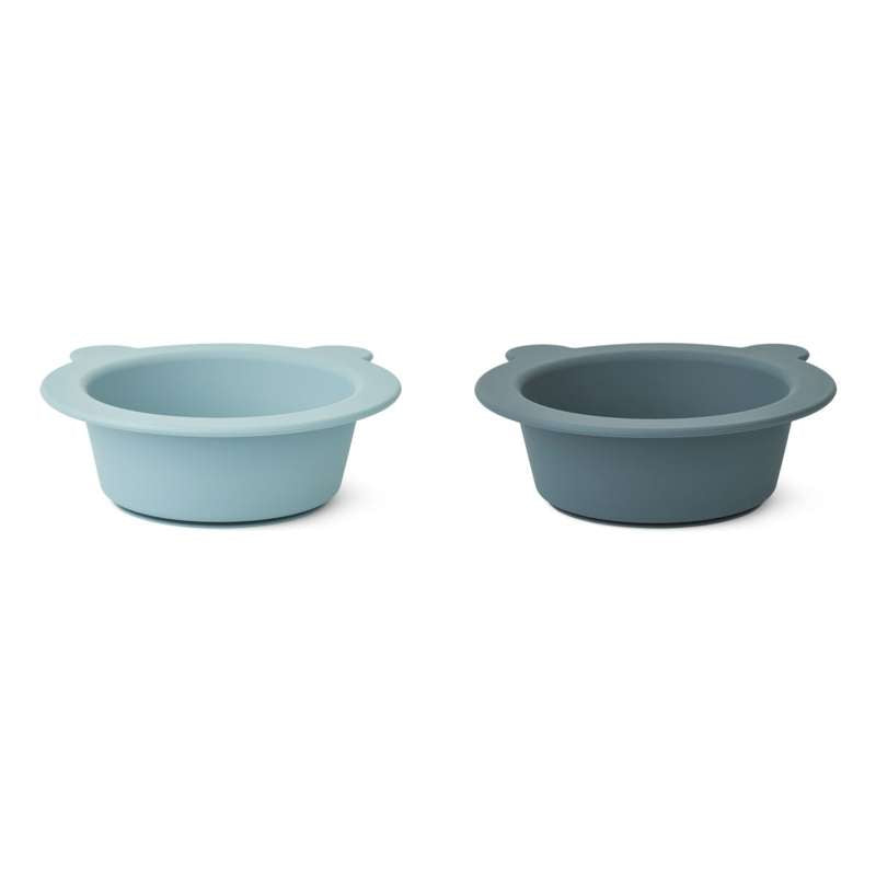 Liewood Peony Skridsikker Skål - 2-Pak - Sea Blue/Whale Blue