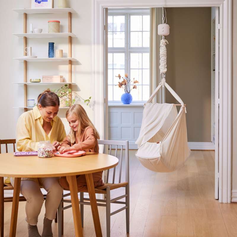 Smart app-styring & søvnlog: Tilpas hastighed og varighed direkte i appen, og følg dit barns søvnmønster med den indbyggede 24-timers søvnlog.