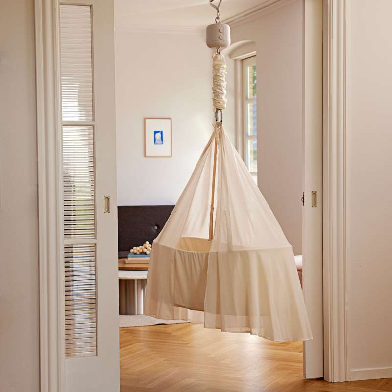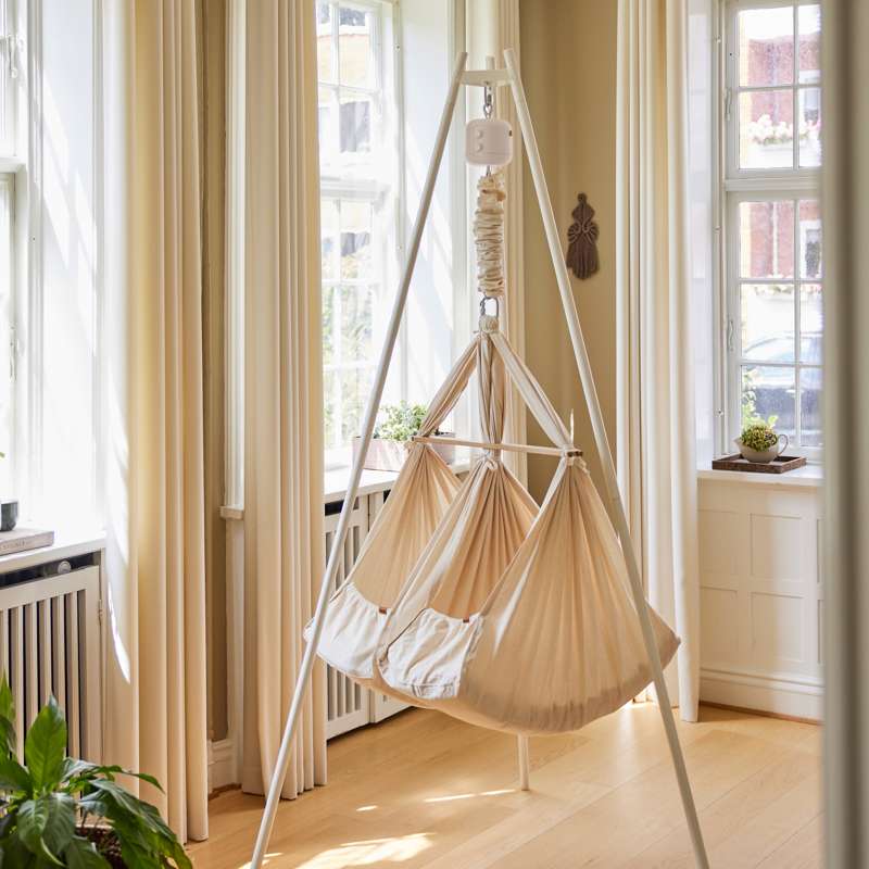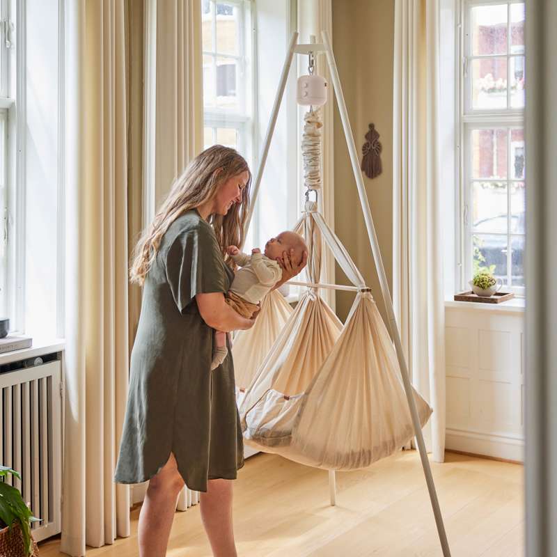 Vores vuggemotor til slyngevugger og babyhængekøjer, der sørger for, at vuggen automatisk bevæger sig op og ned og dermed skaber den vuggende bevægelse, som er med til at give dit barn den ro og tryghed, der får ham eller hende til at sove. Samtidig giver vuggemotoren jer som forældre, mulighed for at få hænderne fri, imens jeres baby sover. Membantus motor til slyngevugge passer til de fleste forskellige hængevugger og slyngevugger bl.a. til vores egen premium slyngevugge.