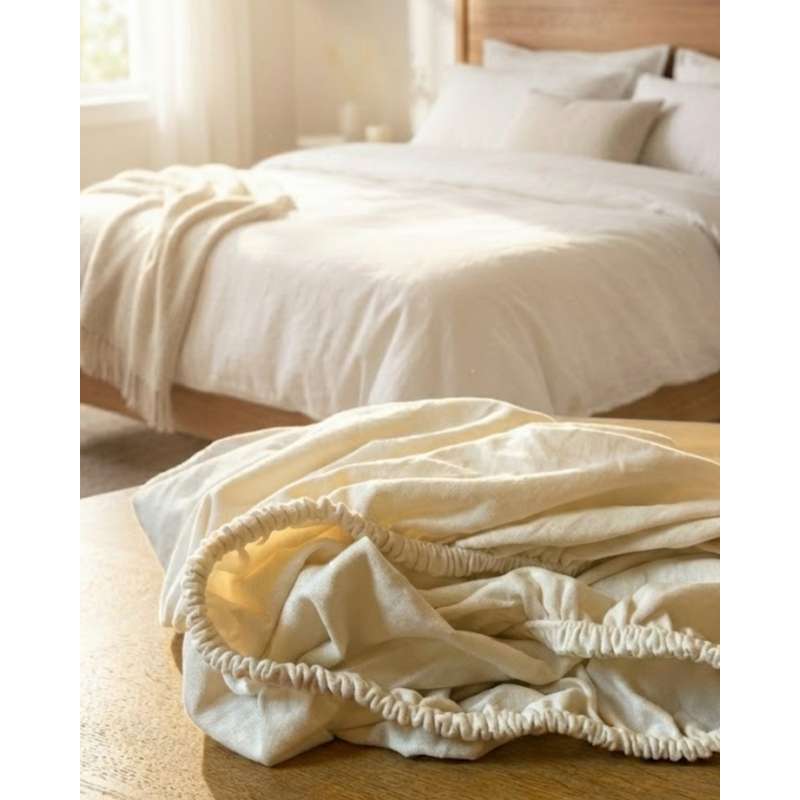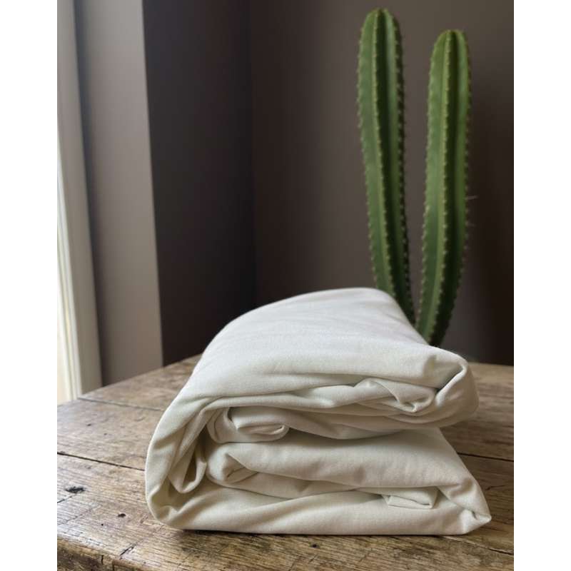 Den knækkede hvide/lyse creme farve giver soveværelset et roligt og tidløst udtryk. Strækjerseyen sikrer, at lagnet former sig efter madrassen og ligger glat uden at krølle.