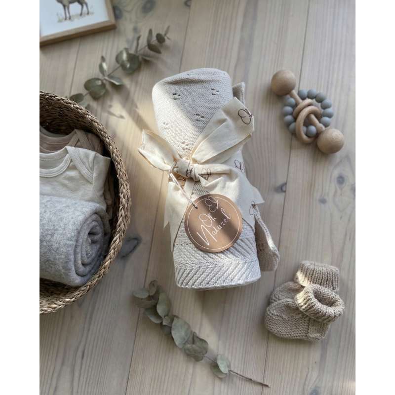 Det elegante babytæppe fra Oh’Naturel forener bæredygtighed, kvalitet og æstetik i et tidløst udtryk. Tæppet er strikket i 100% GOTS-certificeret bomuld og er derfor blødt mod sart hud og fremstillet under ansvarlige forhold. Størrelsen på 80×100 cm gør det alsidigt i hverdagen: et lunt lag i tremmesengen, en tryg makker til barnevognen og en hyggelig ledsager på sofaen. Det fine hulmønster giver et let, luftigt fald og bidrager til god åndbarhed, så barnet holdes behageligt tempereret året rundt.