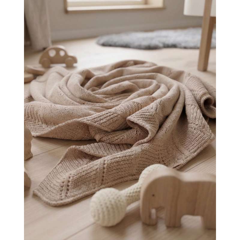 Oh'Naturel Strikket Babytæppe - Økologisk Bomuld - 80x100 cm. - Sand
