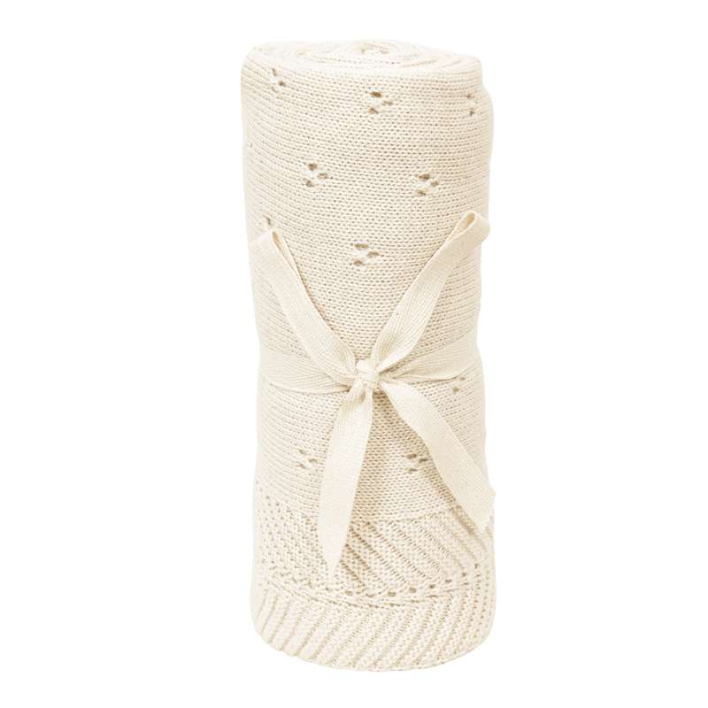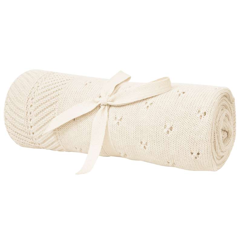 Oh'Naturel Strikket Babytæppe - Økologisk Bomuld - 80x100 cm. - Swan