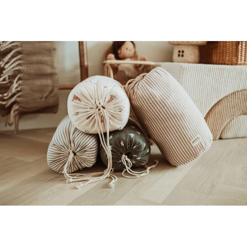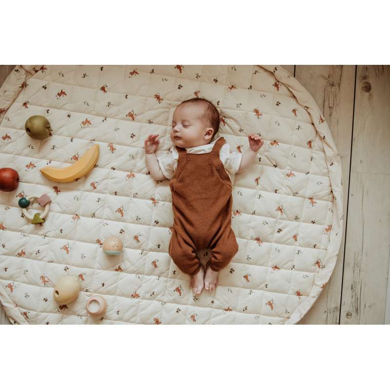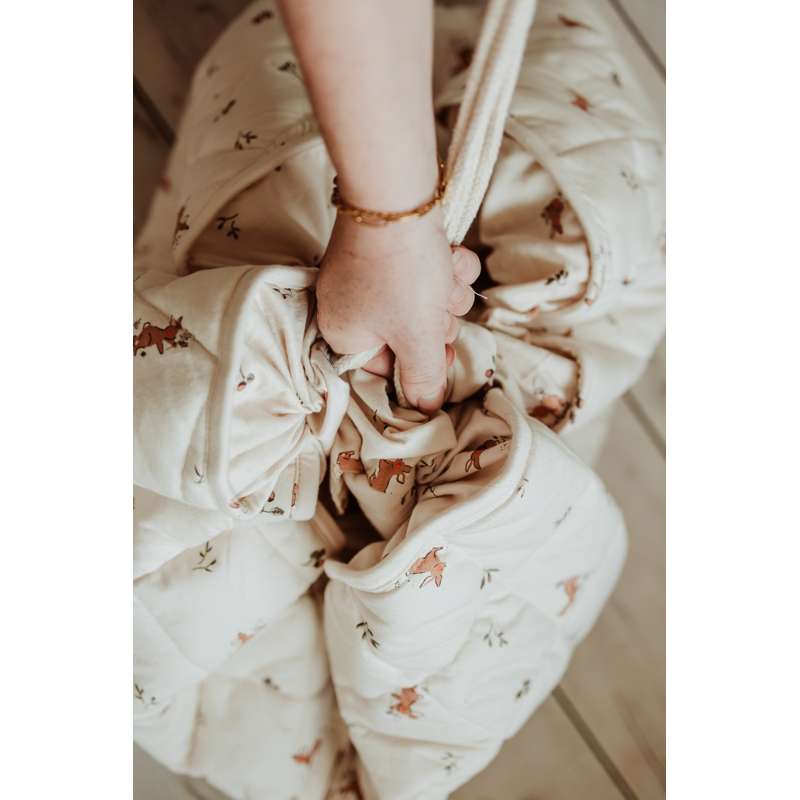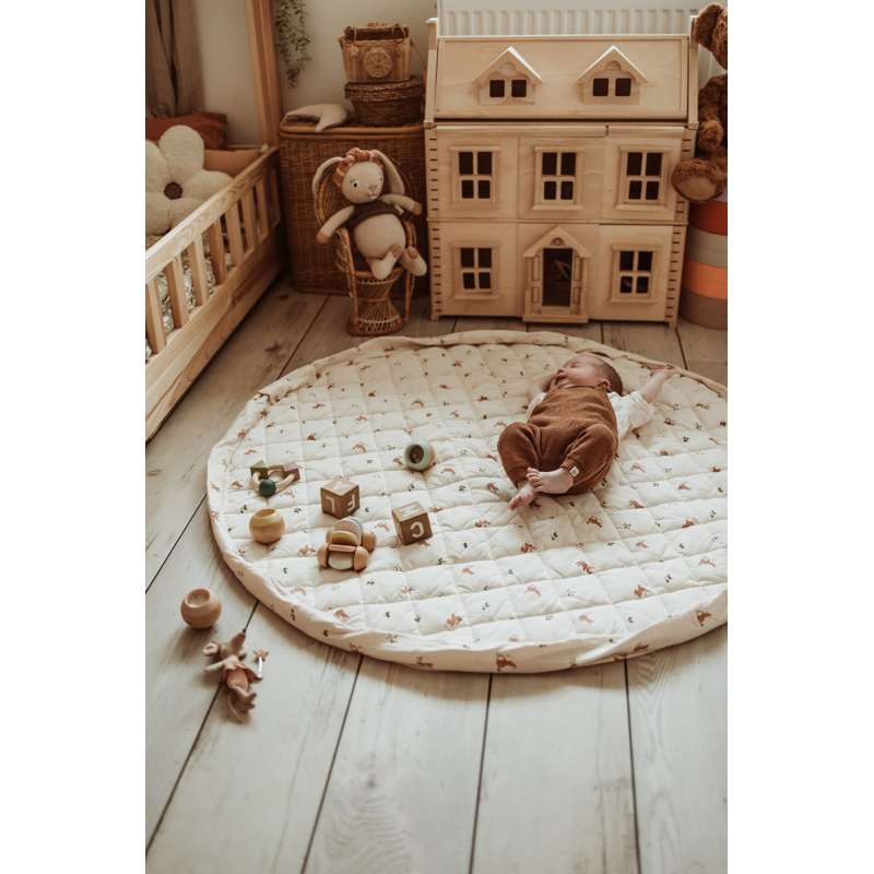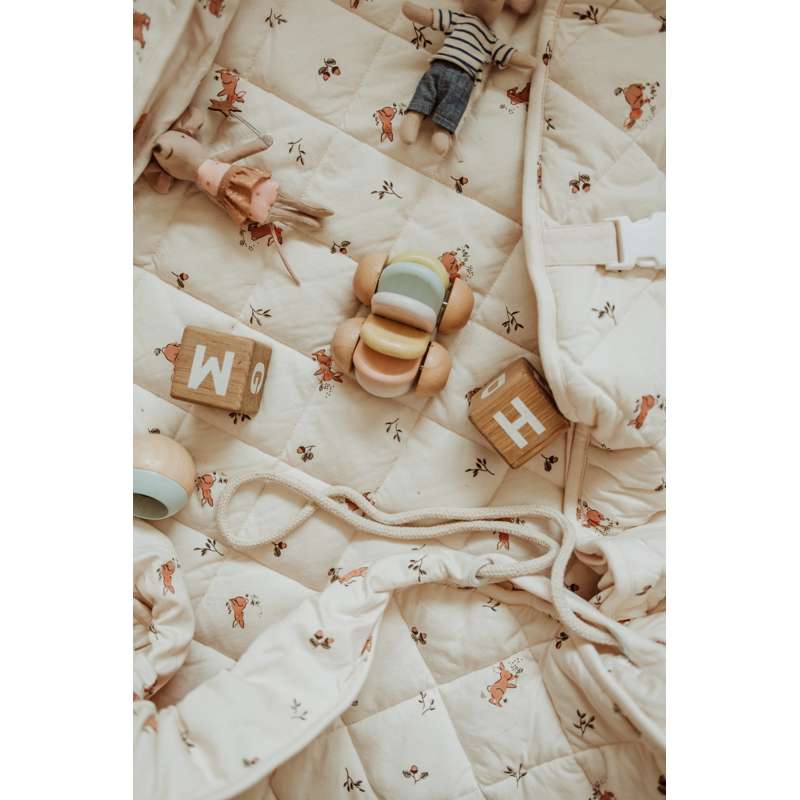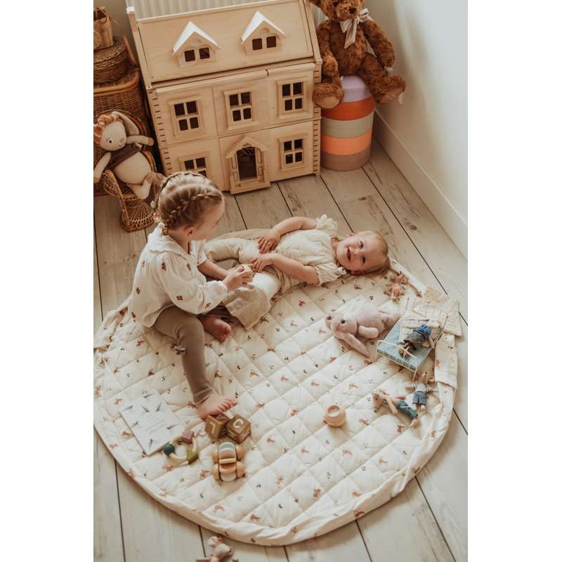 Tæppet kan fyldes med legetøj og bøger, så det også er ideelt til ture i parken eller på besøg hos venner. Et funktionelt og charmerende valg til aktive familier.