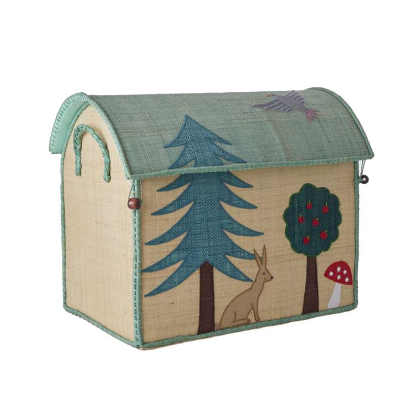 RICE Raffia Förvaringshus - Happy Forest - Medium