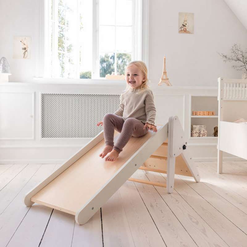 Banan kan användas som antingen klätterbana eller rutsjebana – det är ni som bestämmer! Den byter funktion genom att ta bort sidorna och vända plattan, vilket gör leken ännu mer flexibel och rolig.