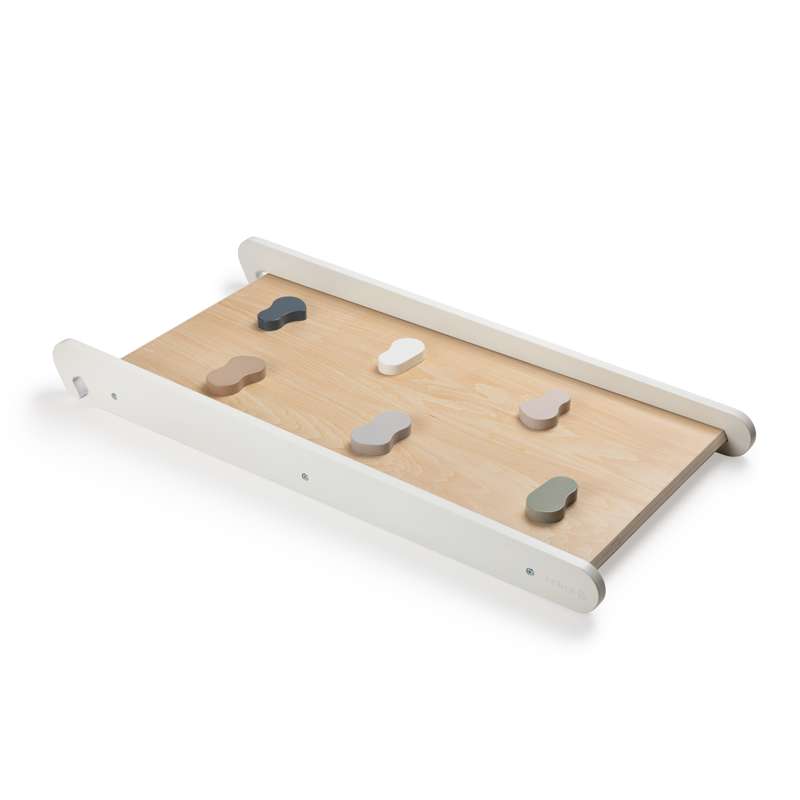 De robusta greppen på klätterdelen har färger som matchar Sebras designunivers och där du kan se trästrukturen igenom.