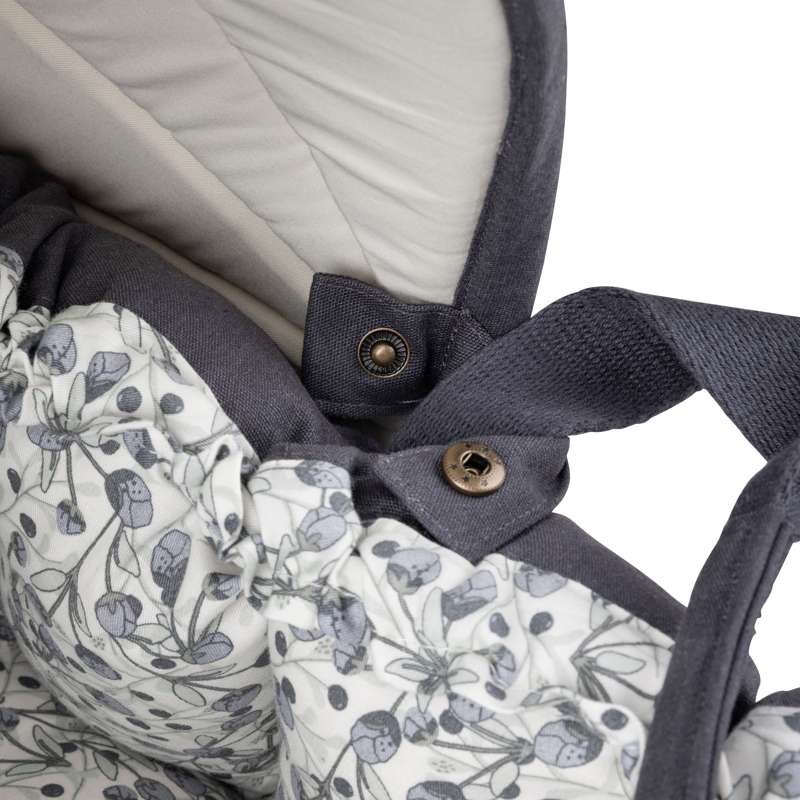 Sebra 3-i-1 Babynest har hanke, der kan lukkes sammen, så du ikke risikerer at tabe den ene hank, når du bruger babynesten som lift, og to praktiske lommer i siderne til sutter og andre nødvendigheder.