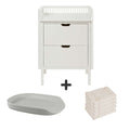 Det populära och fina skötbordet i Classic White från danska Sebra, tillsammans med Sebra skötbädd i färgen Stone Grey och 5 ekologiska tygblöjor/minisvabb (80 x 80 cm.) från Naturebaby. Matcher perfekt med den populära Sebra sängen och kommer att pryda vilket rum som helst i lägenheten eller huset.